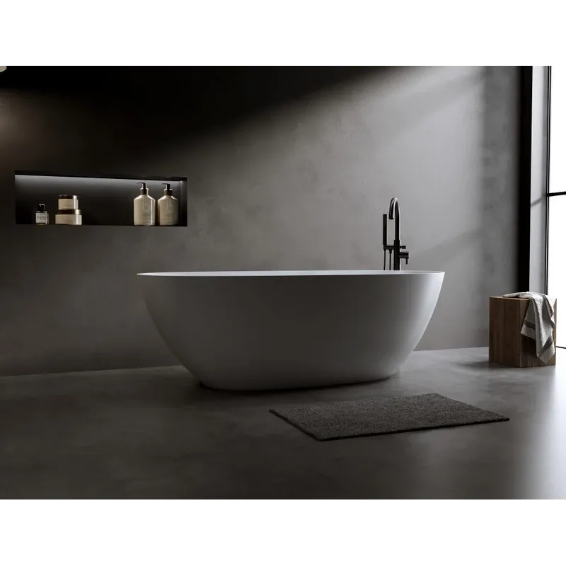 Поверхность ванны приятная на ощупь и не холодная благодаря низкому уровню теплопроводности, что делает процесс эксплуатации очень приятным.