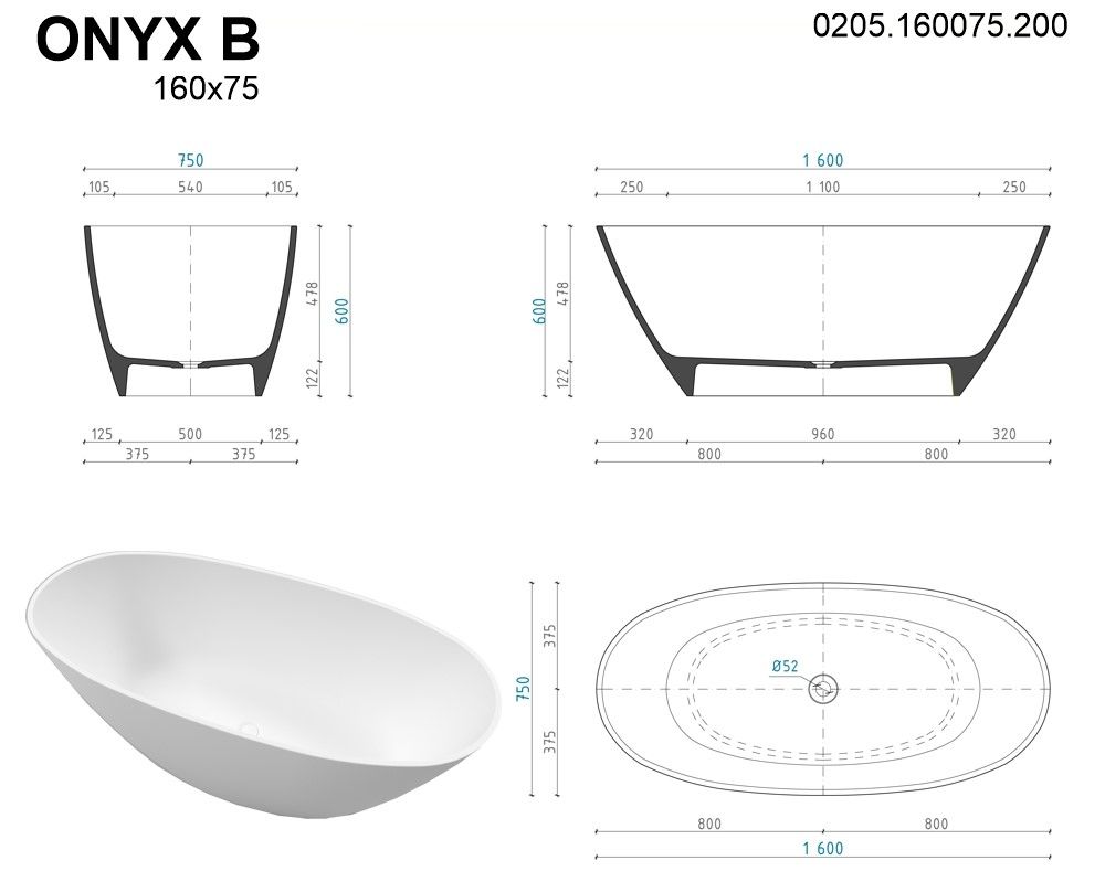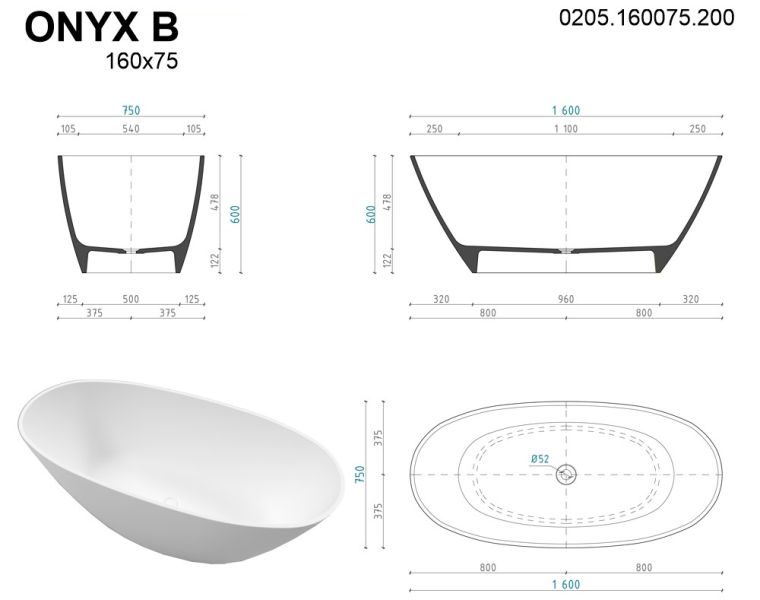 Для создания ванны ONYX B используются материалы премиум класса, качество которых соответствует высочайшим стандартам.