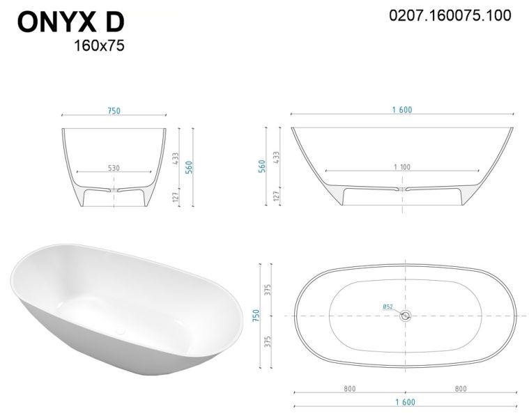 Для создания ванны ONYX D используются материалы премиум класса, качество которых соответствует высочайшим стандартам.