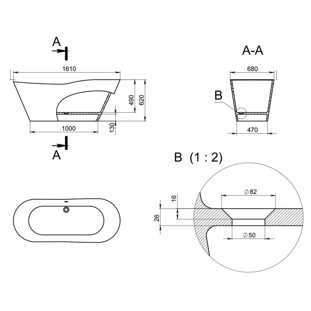 Ванна отдельностоящая Holbi Afrodita 161x68см белый матовый 1.01.005.11.1