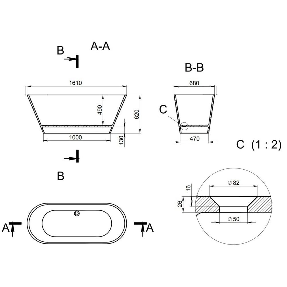 Ванна отдельностоящая Holbi Selena 161x68см бетон 2.01.006.44.4