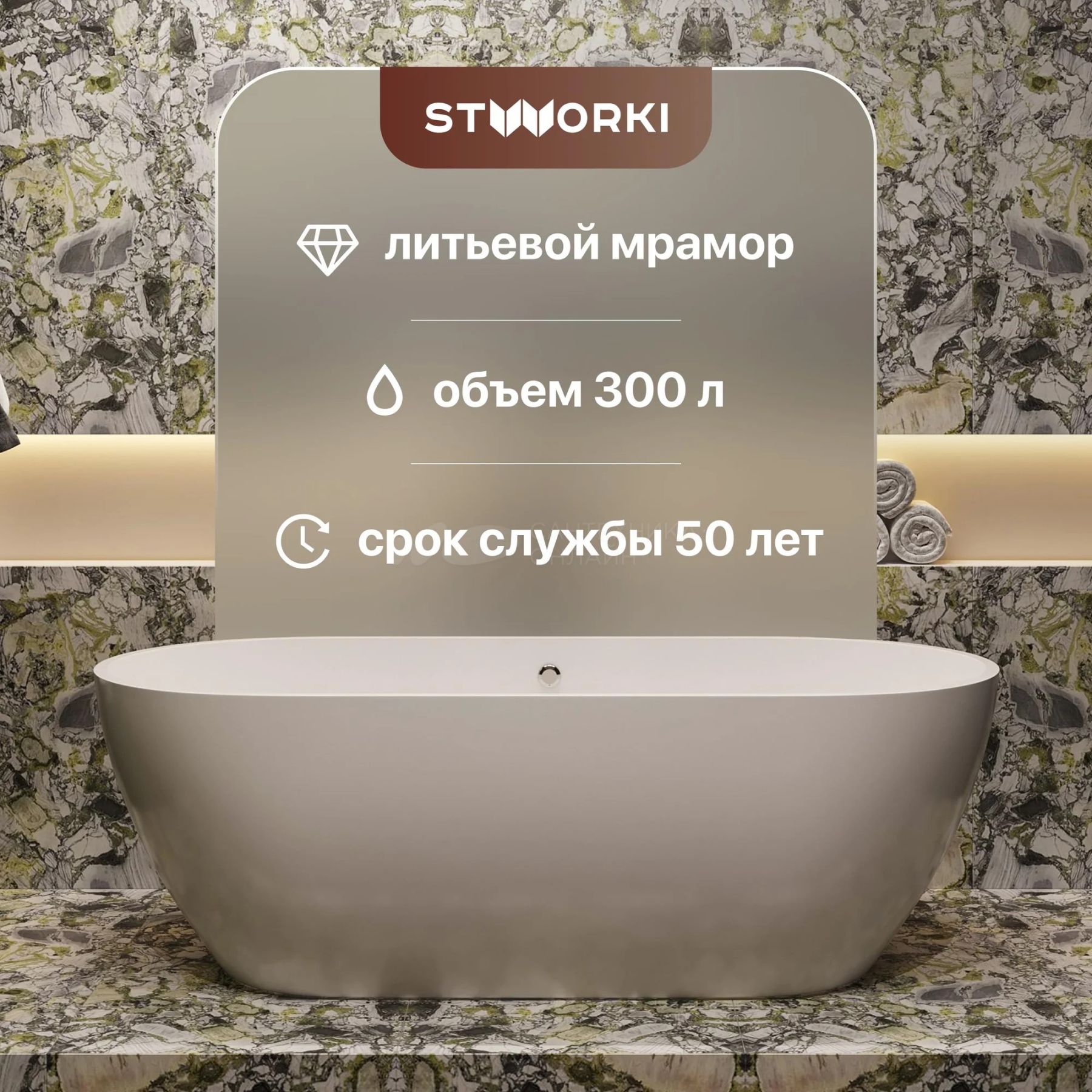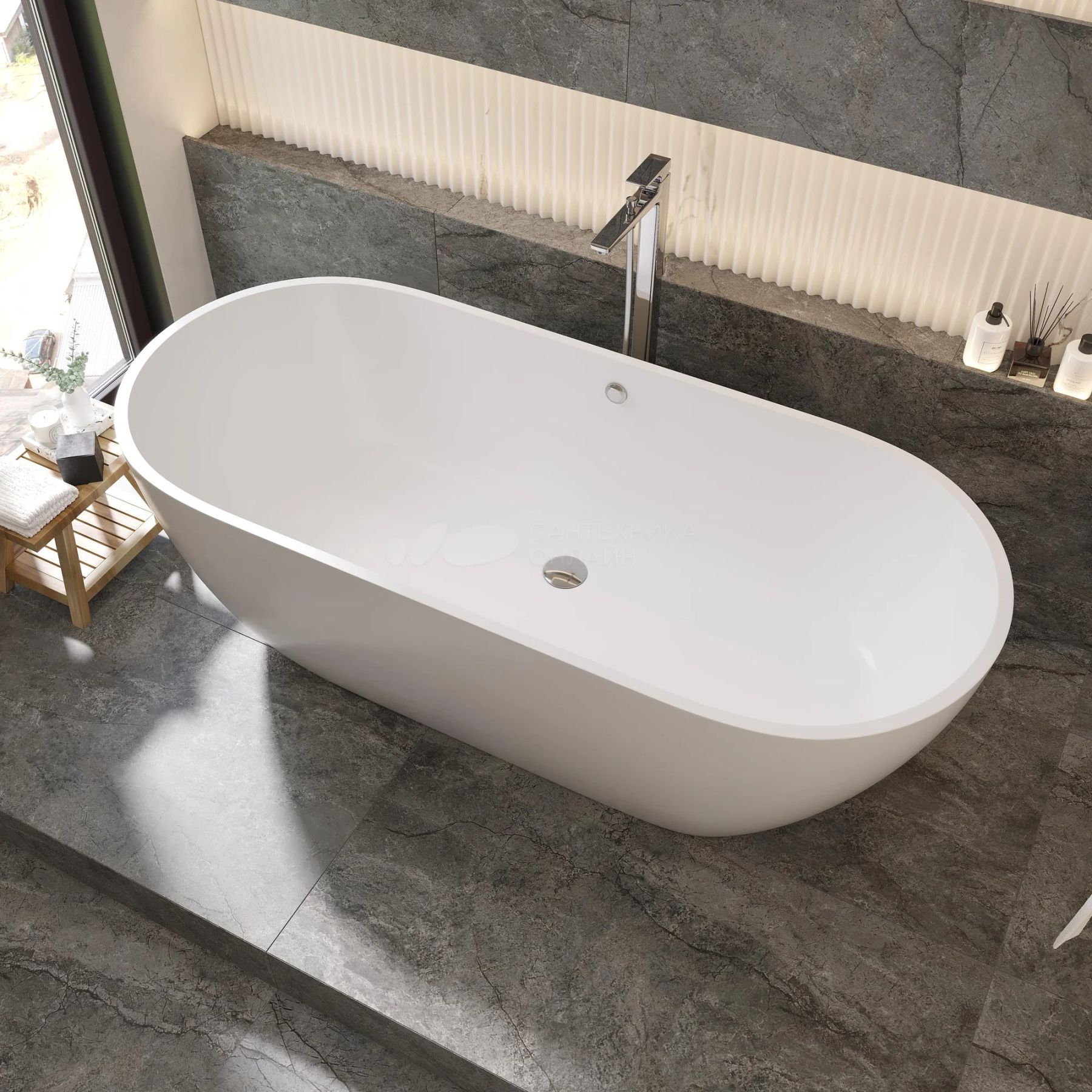 Ванна STWORKI Берген 180x80 см отдельностоящая овальная из искусственного камня купить