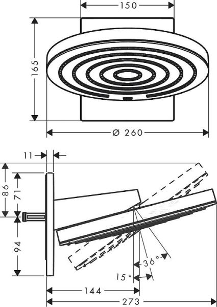 Размер верхнего душа, см:26