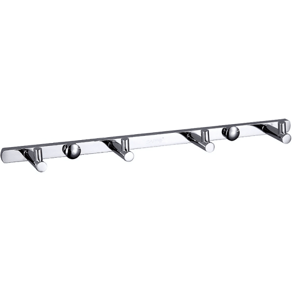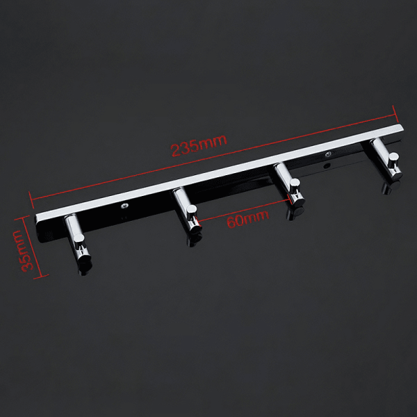 Крючки расположены на оптимальном расстоянии друг от друга для удобного использования. Устанавливается на стену посредством шурупов или саморезов. Стойкое хромированное покрытие защищает изделие от влаги и придает ему блестящий вид.