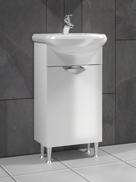 1 дверца; 1 полка ЛДСП; ручка металлическая хромированная; опоры конус регулируемые.