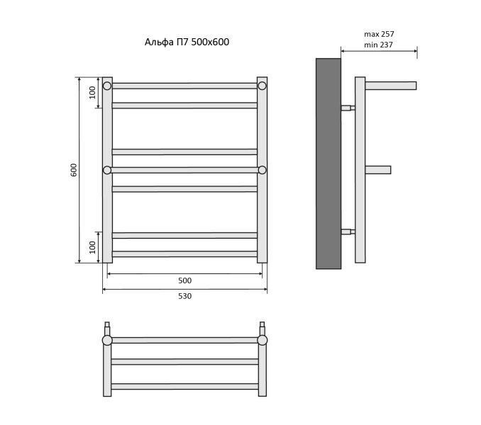 Водяной полотенцесушитель Aquatek Альфа AQ RRP0760CH П7 50x60см с полкой хром