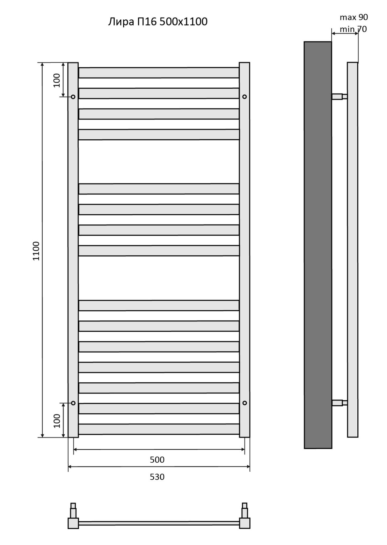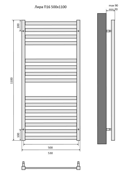 Полотенцесушитель водяной Aquatek (Акватек) Лира П16 500х1100 мм, подключение нижнее/диагональное, сверхпрочная пищевая нержавеющая сталь AISI 304L, гарантия 10 летХарактеристики:30х30/30х10,без фитинговКомплектация:полотенцесушитель;