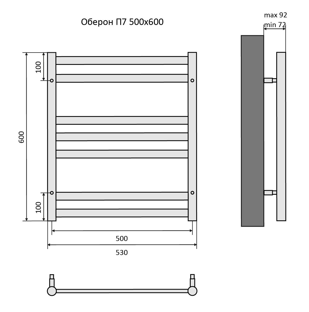 Полотенцесушитель водяной Aquatek (Акватек) Оберон П7 500х600 мм, подключение нижнее/диагональное, сверхпрочная пищевая нержавеющая сталь AISI 304L, гарантия 10 летХарактеристики:32х29, без фитинговКомплектация:полотенцесушитель;