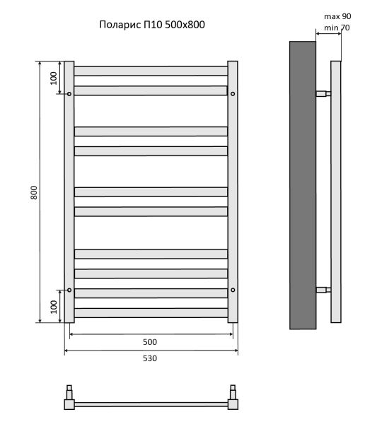 Полотенцесушитель водяной Aquatek (Акватек) П10 500х800 мм, подключение нижнее/диагональное, сверхпрочная пищевая нержавеющая сталь AISI 304L, гарантия 10 летХарактеристики:Стойка квадрат 30х30,ребра овал 29,без фитинговКомплектация:полотенцесушитель;