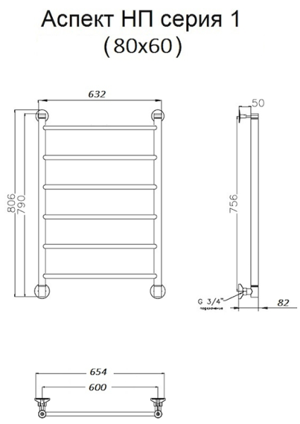 Водяной полотенцесушитель Тругор Аспект НП 1 80x60см хром Аспект1/нп8060