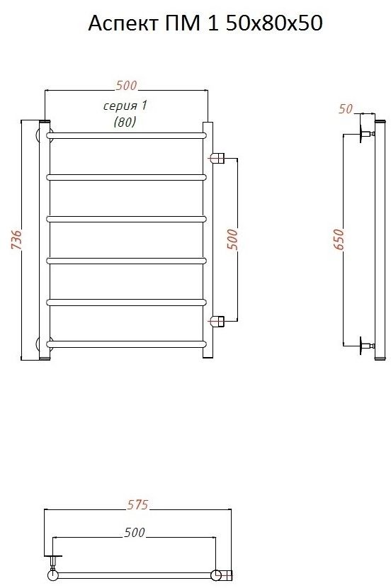 Водяной полотенцесушитель Тругор Аспект ПМ 1 50x80x50см хром Аспект1/ПМ508050