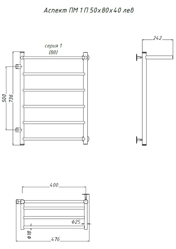 Водяной полотенцесушитель Тругор Аспект ПМ 1 П 50x80x40см с полкой левый хром Аспект1/ПМ508040Плев