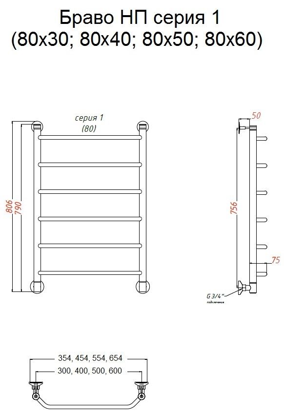 Водяной полотенцесушитель Тругор Браво НП 1 80x40см хром Браво1/нп8040