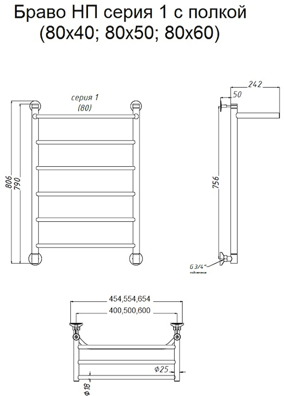 Водяной полотенцесушитель Тругор Браво НП 1 П с полкой 80x60см хром Браво1/нп8060П