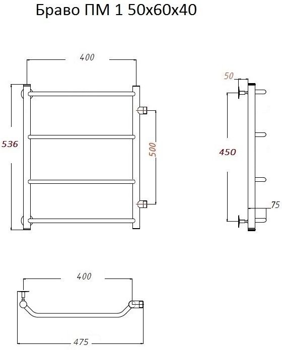 Водяной полотенцесушитель Тругор Браво ПМ 1 50x60x40см хром Браво1/ПМ506040