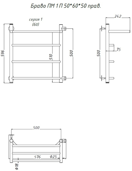 Водяной полотенцесушитель Тругор Браво ПМ 1 П 50x60x50см с полкой правый хром Браво1/ПМ506050Пправ купить