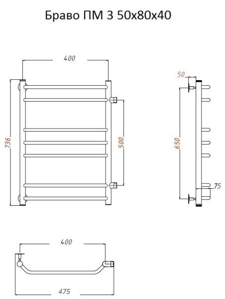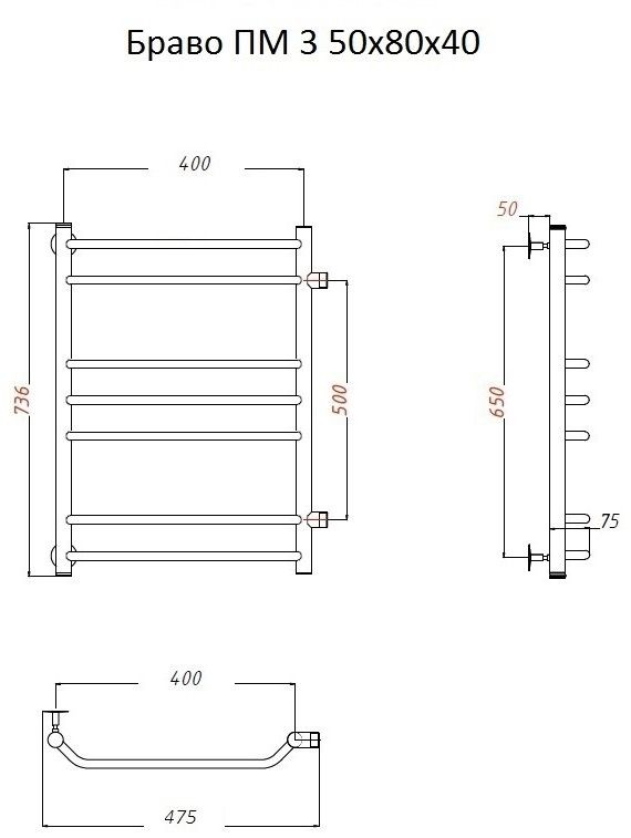 Водяной полотенцесушитель Тругор Браво ПМ 3 50x80x40см хром Браво3/ПМ508040