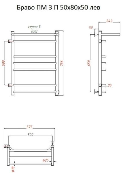 Водяной полотенцесушитель Тругор Браво ПМ 3 П 50x80x50см с полкой левый хром Браво3/ПМ508050Плев купить