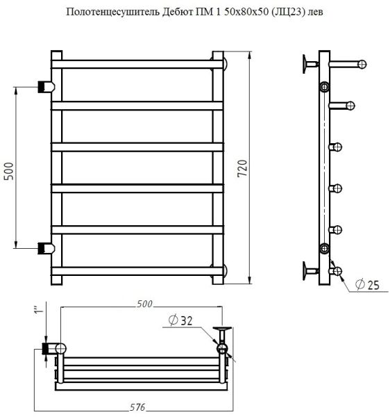 Водяной полотенцесушитель Тругор Дебют ПМ 1 50x80x50см левый хром Дебют1/ПМ508050лев
