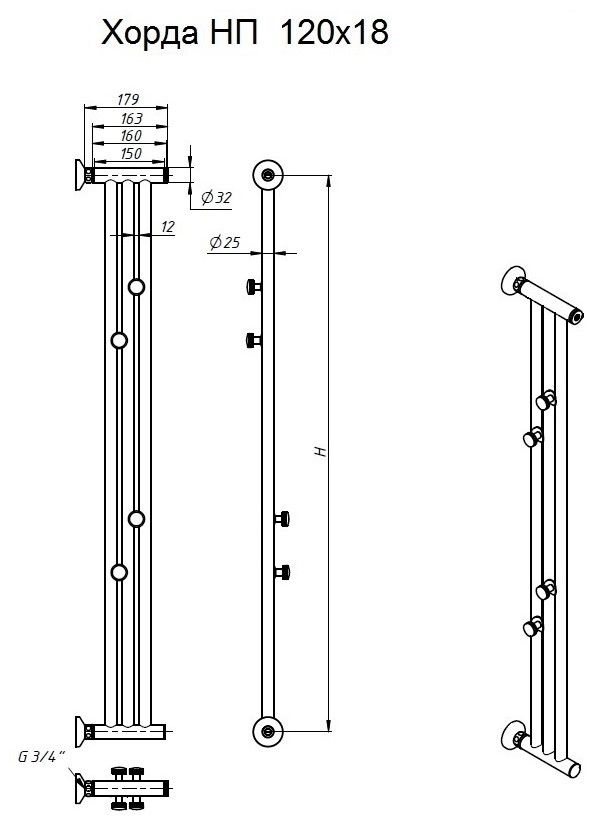 Водяной полотенцесушитель Тругор Хорда 120x18см хром Хорда120*18