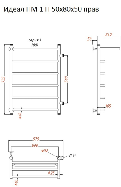 Водяной полотенцесушитель Тругор Идеал ПМ 1 П 50x80x50см с полкой правый хром Идеал1/ПМ508050Пправ