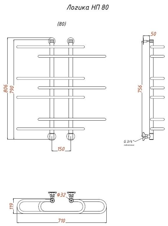 Водяной полотенцесушитель Тругор Логика НП 80x60см хром Логика/НП8060