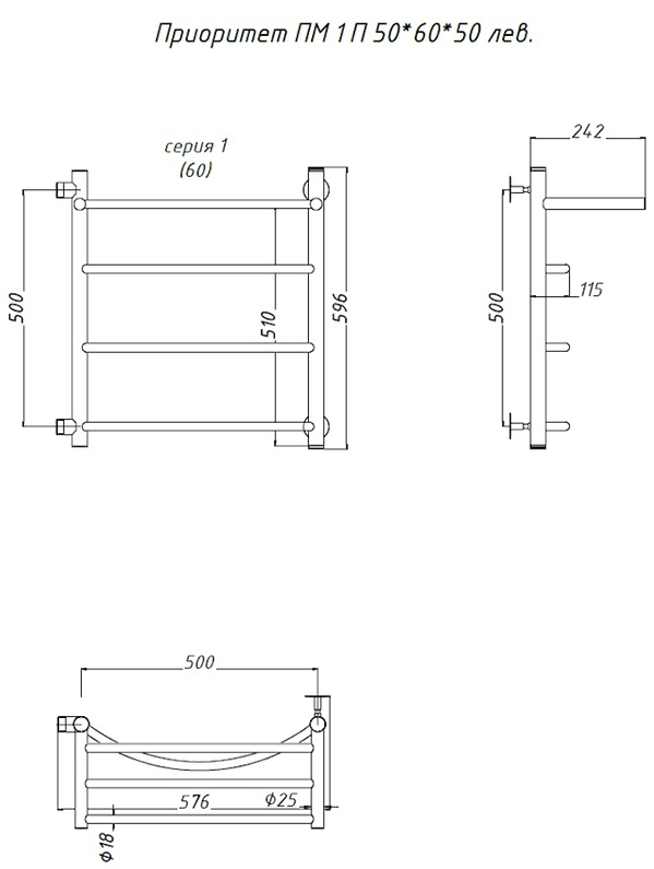 Водяной полотенцесушитель Тругор Приоритет ПМ 1 50x60x50см с полкой левый хром Приоритет1/ПМ506050Плев купить