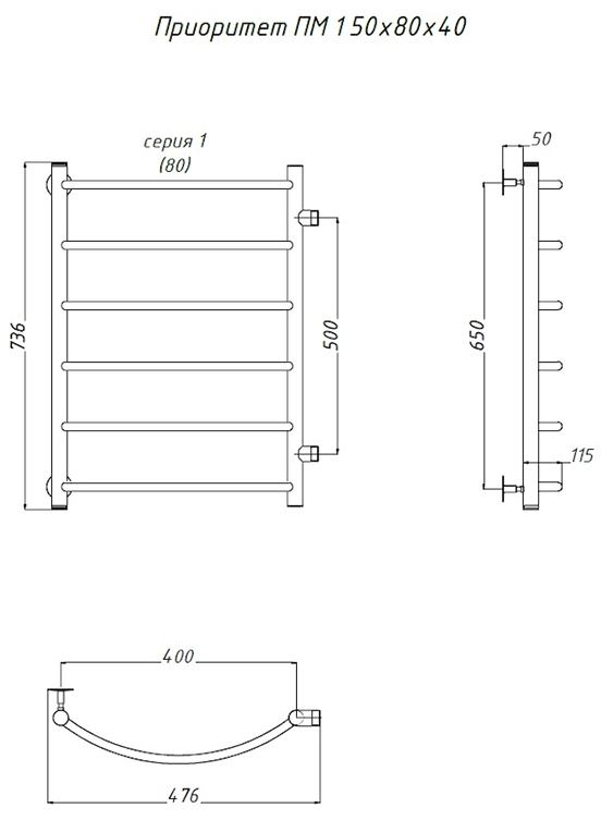 Водяной полотенцесушитель Тругор Приоритет ПМ 1 50x80x40см хром Приоритет1/ПМ508040