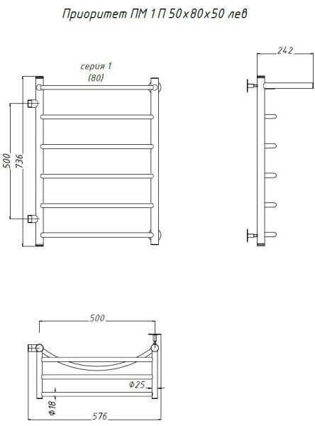 Водяной полотенцесушитель Тругор Приоритет ПМ 1 50x80x50см с полкой левый хром Приоритет1/ПМ508050Плев купить