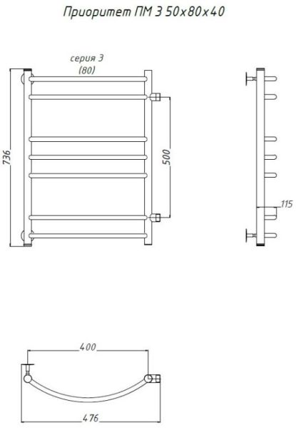 Водяной полотенцесушитель Тругор Приоритет ПМ 3 50x80x40см хром Приоритет3/ПМ508040