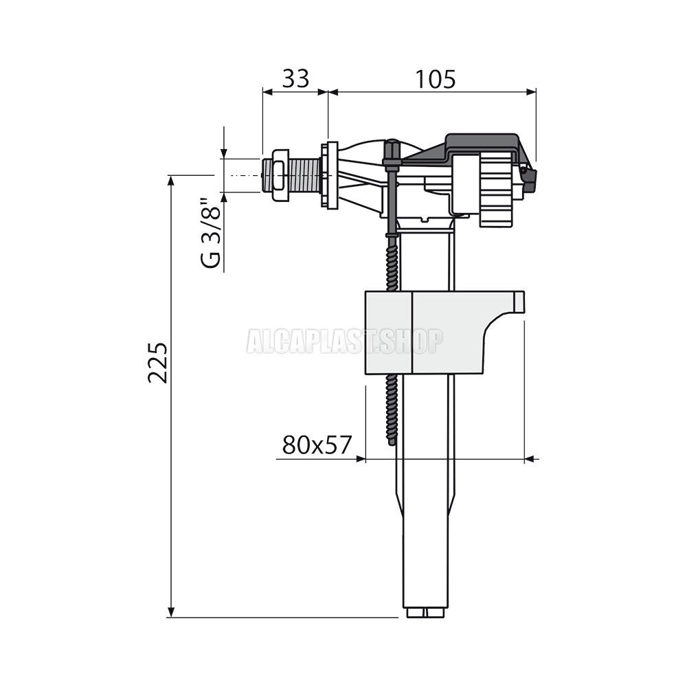 Впускной механизм AlcaPlast с боковой подводкой и металлической резьбой (для пластиковых бачков и скрытых систем инсталляции) A16M-3/8"