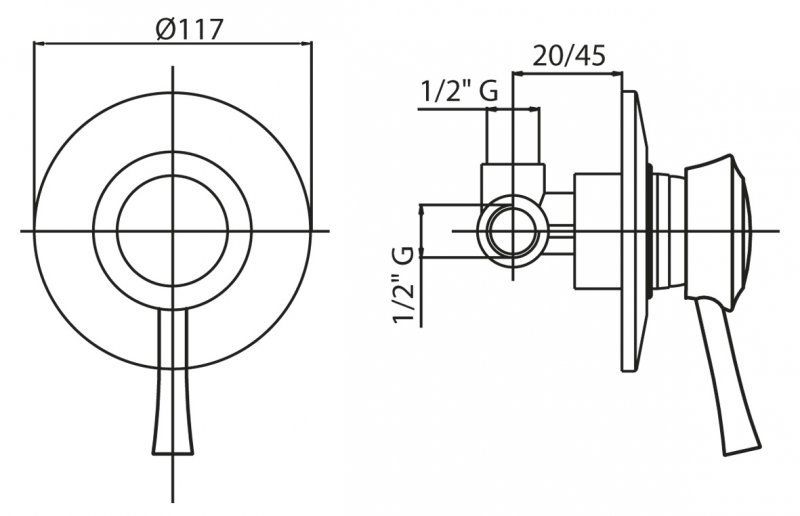 • Встраиваемый однорычажный смеситель для душа;