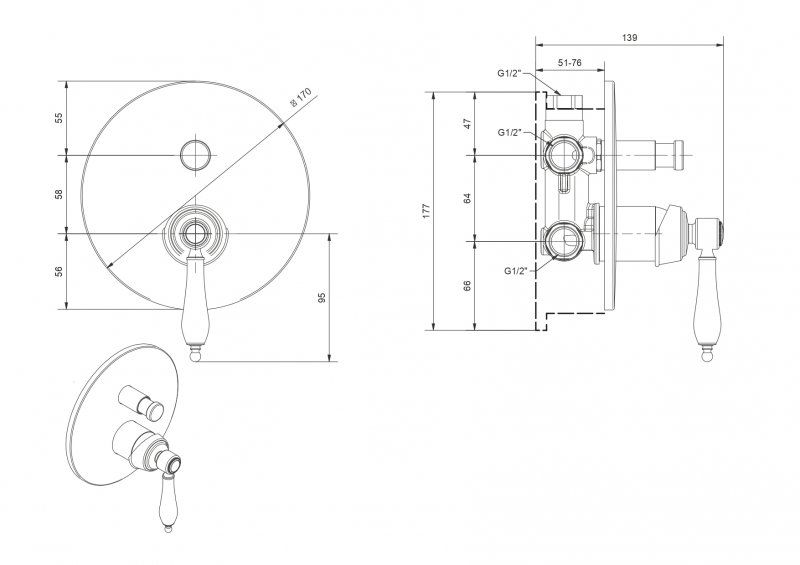 Оснащение: скрытая монтажная часть, дивертор