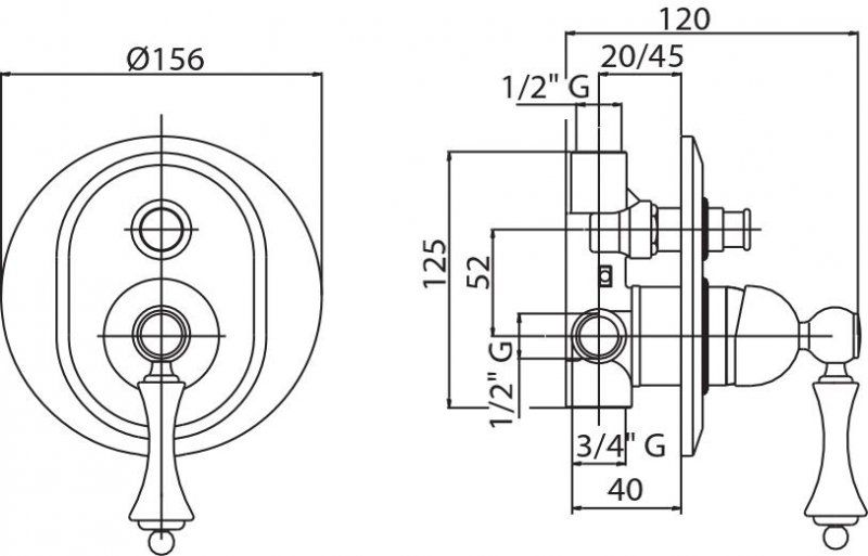 Встраиваемый однорычажный смеситель для душа с переключателем, хром Cezares MARGOT-VDIM-01-Bi