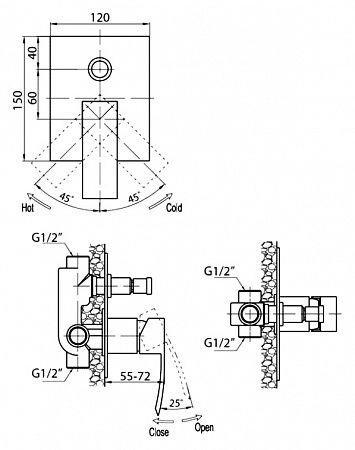 Тип подводки: внутренний (скрытый) монтаж 1/2"
