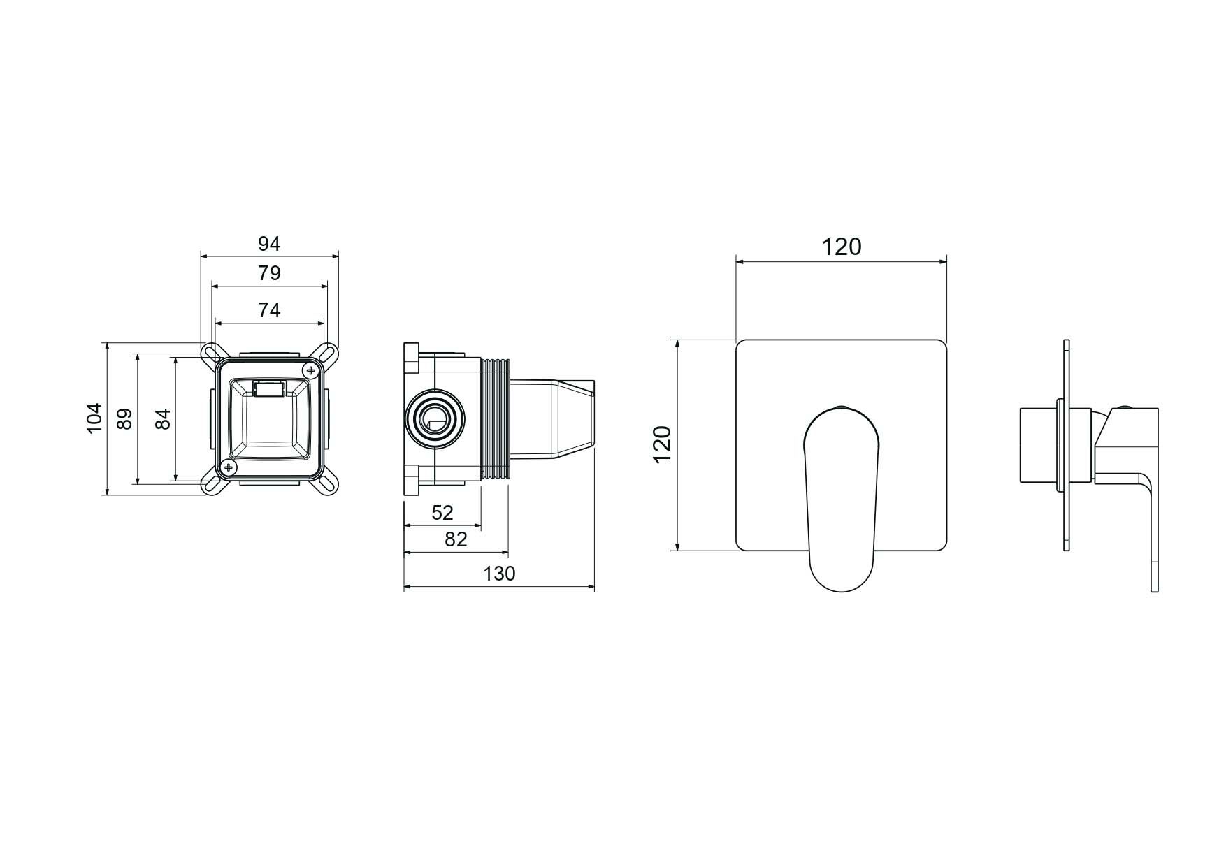 • Смеситель из латуни с установочной коробкой на 1 потребителя (внешняя и скрытая часть)