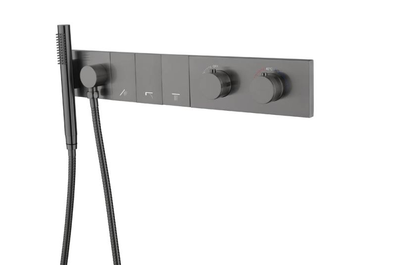Встраиваемый смеситель для душа Boheme Zodiac Thermo 133-SYS-GM с термостатом оружейная сталь купить