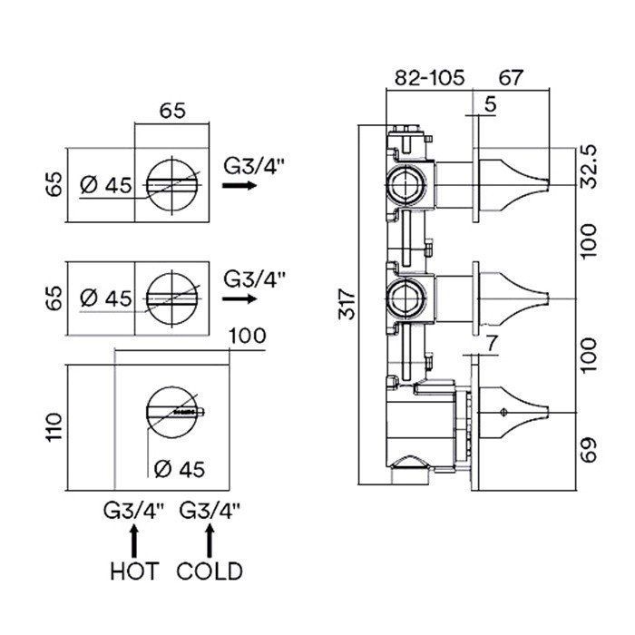 Термостат Bossini Apice представляет собой высококачественное встраиваемое устройство, которое обеспечивает надежное и эффективное управление температурой воды. Он доступен в двух моделях: на 2 выхода и на 3 выхода, что позволяет выбрать наиболее подходящий вариант в зависимости от ваших потребностей. Устройство оснащено индивидуальными накладками, которые обеспечивают возможность горизонтальной или вертикальной установки, идеально вписываясь в любой интерьер.
