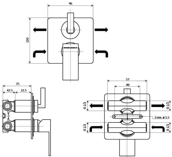 Строгие линии встраиваемого однорычажного смесителя для душа Fioretto отлично смотрятся в современных интерьерах. Смеситель позволяет распределить поток воды на два выхода и подключить несколько устройств, например, верхний душ и ручную лейку. После монтажа на виду останутся только рычаги управления, экономя пространство и скрывая все технические детали. Латунный корпус с двойным покрытием, выполненным по специальной технологии, устойчив к ржавчине, а также другим химическим и механическим повреждениям. Керамический картридж гарантирует долговечность механизма смесителя. Качество смесителя подтверждено гарантией 5 лет.