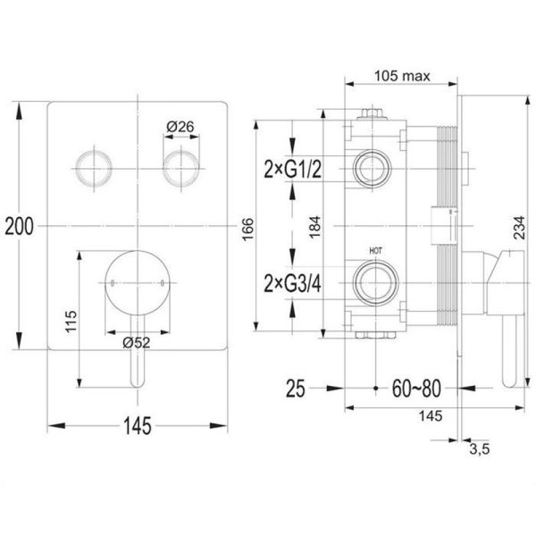 Y GOCLICK | смеситель для душа/ванны скрытого монтажаЦвет: хром