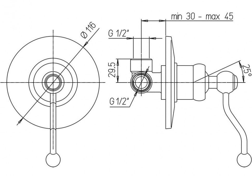 • Встраиваемый монтаж скрывает все соединения и оставляет на виду только рычаг управления, экономя пространство.