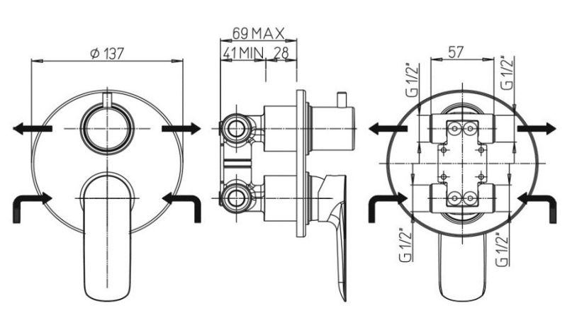 - Встраиваемый монтаж скрывает все соединения и оставляет на виду только рычаг управления, что добавляет в интерьер дизайнерский акцент, экономя пространство.