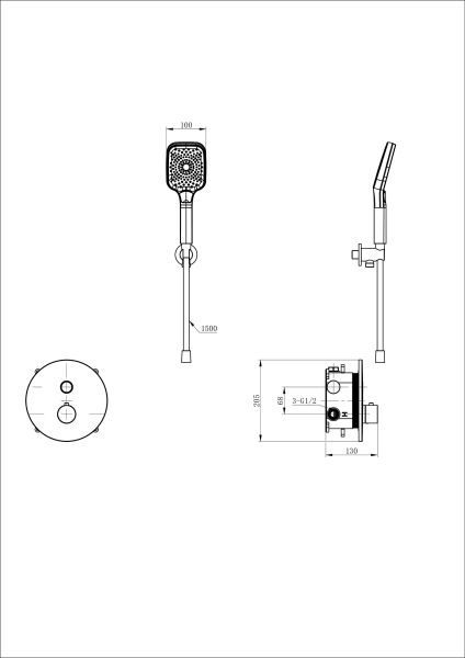 Смеситель для душа с термостатом встраиваемый WONZON & WOGHAND, Черный матовый (WW-D1017-A-MB)