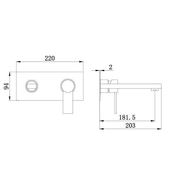 Смеситель для раковины Aquanika Round AQR6015CR настенный на 2 отверстия монтажная часть в комплекте хром