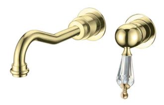 Смеситель Boheme Imperiale Ripresa 327 — это элегантное и технологичное решение для раковины, выполненное в ретро-стиле с элементами роскоши. Модель предназначена для встраиваемого монтажа и отличается изысканным дизайном, сочетающим плавные округлые формы, золотое покрытие и декоративные вставки из хрусталя, что придаёт интерьеру особый шарм и статусность.
