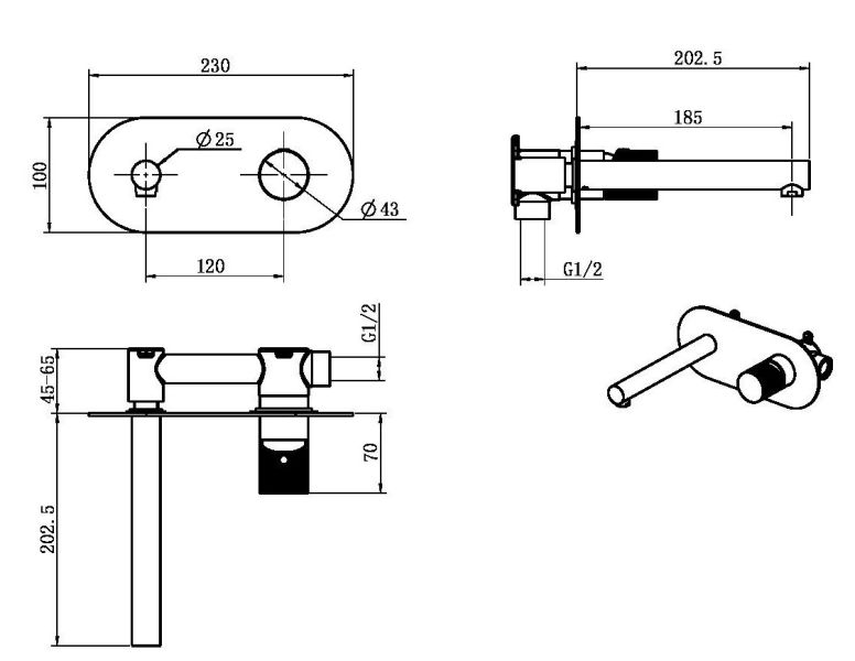 Встраиваемый смеситель для раковины Boheme Stick 125-BCR.2 чёрный матовый/хром