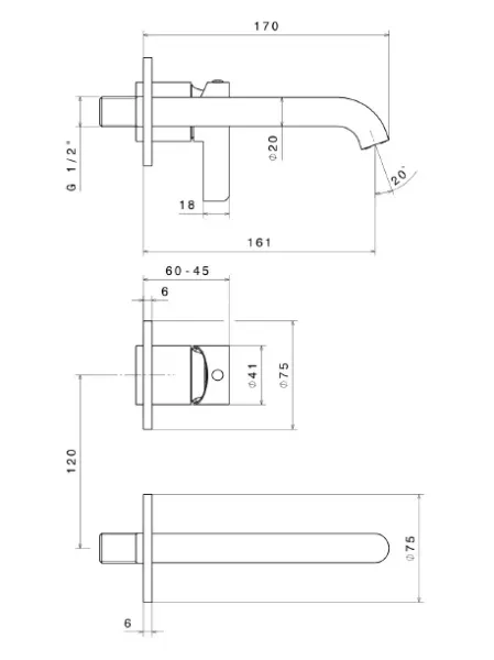 Встраиваемый в стену однорычажный смеситель для раковин. Внимание: для чистки черных и цветных изделий можно применять только мягкую губку и мыльный раствор. Использование моющих и абразивных средств запрещено.