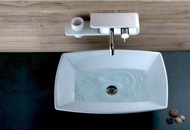 • Полочка из искусственный камня – оригинальное решение для оптимизации места в ванной комнате.