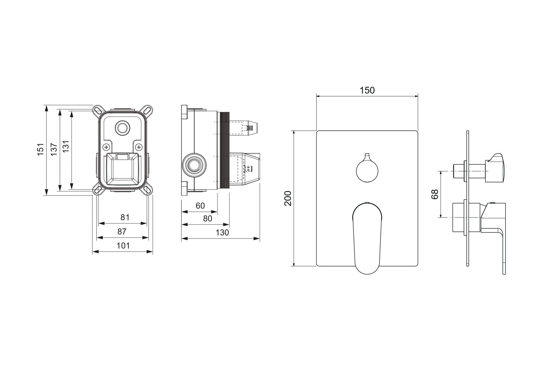 • Смеситель из латуни с установочной коробкой на 2 потребителя (внешняя и скрытая часть)