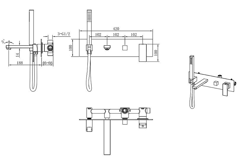 Встраиваемый смеситель для ванны Boheme Qubic 474-2-SGM антрацит глянец